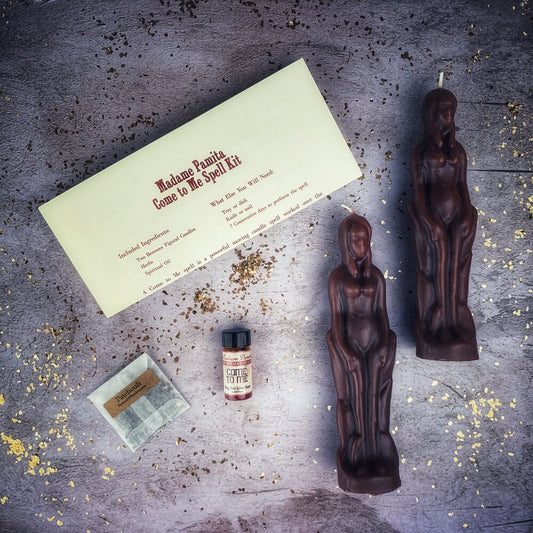 Come to Me spells are a special category of "moving candle spells." These spells take place over the course of seven days. Burn the candles a little it each day and move them inch-by-inch toward one another until the final day when they finish burning. This might sound like a complicated candle spell. However, it's actually quite simple to do with a Come to Me spell kit. Each Come to Me Spell Kit includes: