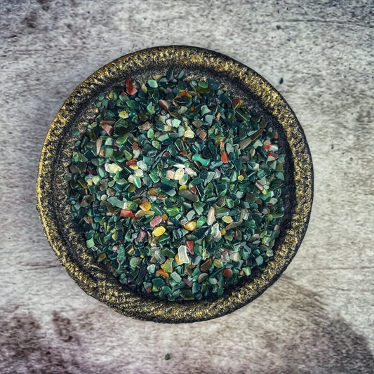 Gem glitter is the smallest tumbled stones to add to your spells. But they are real gemstones that work the same ways that you use glitter in your spells. They add the extra magic of crystals and without harming the environment with microplastics.