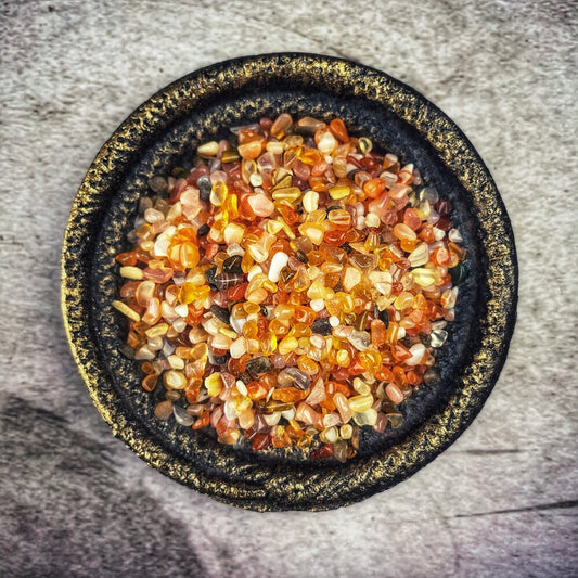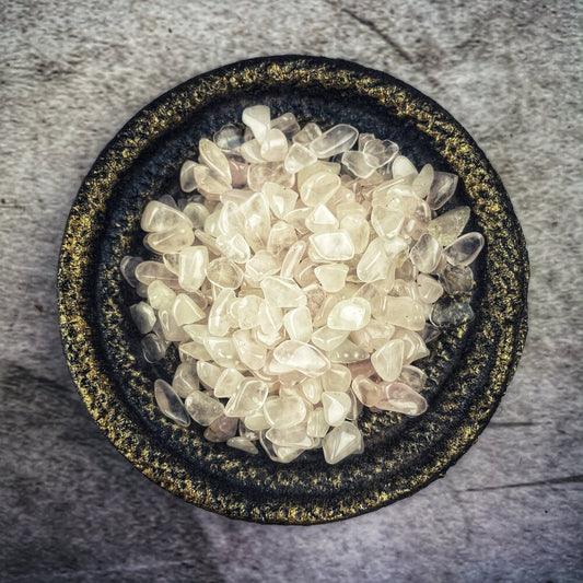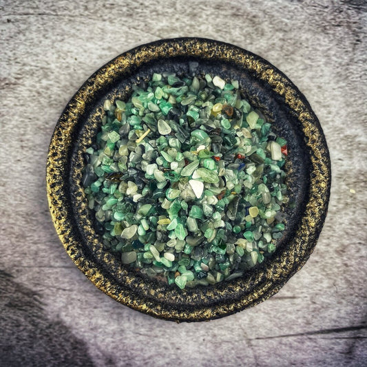 Have you worked with Gemstone Chips and Gem Glitters? Gem chips are smaller than full-sized tumbled stones but larger than gem glitter. They are perfect for sprinkling around your candle spells. Or add them to crystal grids and are just the right size for charm bags or loading your candles. Work with them however you like!