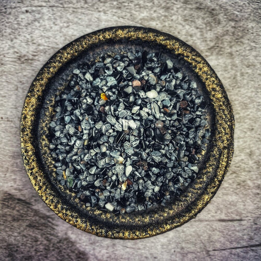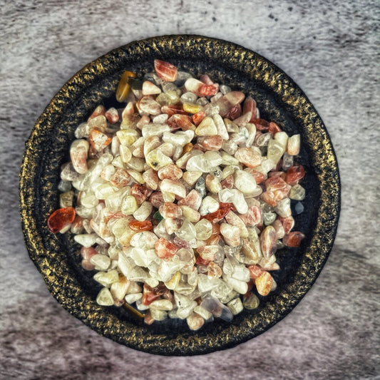 Have you worked with Gemstone Chips and Gem Glitters? Gem chips are smaller than full-sized tumbled stones but larger than gem glitter. They are perfect for sprinkling around your candle spells. Or add them to crystal grids and are just the right size for charm bags or loading your candles. Work with them however you like!