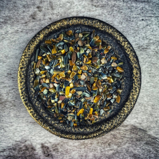 Gem glitter is the smallest tumbled stones to add to your spells. But they are real gemstones that work the same ways that you use glitter in your spells. They add the extra magic of crystals and without harming the environment with microplastics.