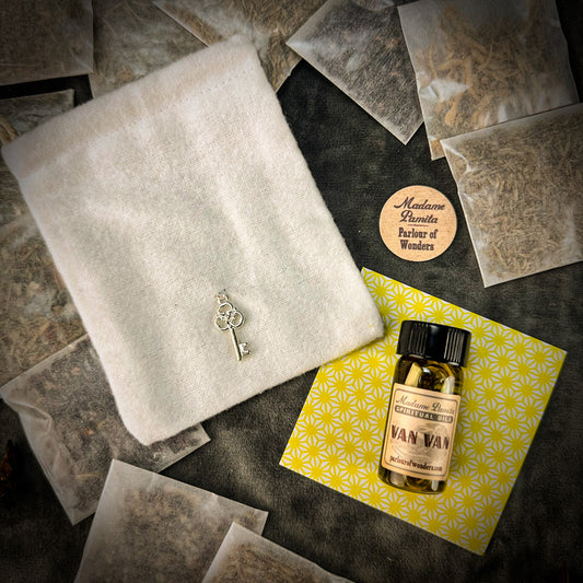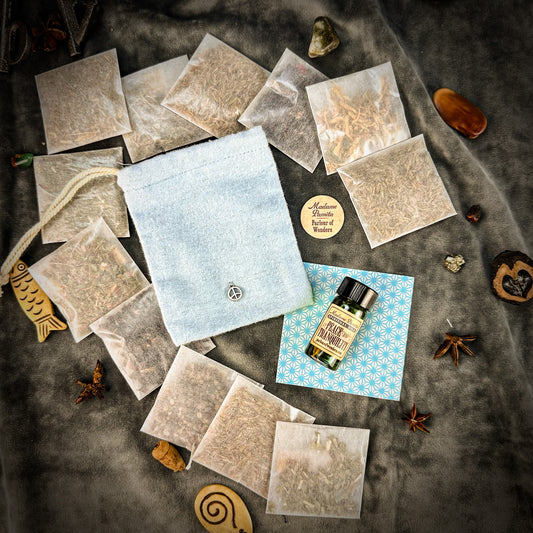 You've probably seen the unnaturally shiny factory-made "mojo bags" filled with a random assortment of fake plastic and other unnatural, and frankly less-than-magical, items. If so, a Parlour of Wonder Mojo Bag Spell Kit will be a pleasant surprise. After all, our mojo bags contain a hand-selected variety of powerfully magical natural materials. These are handmade bags containing herbs, oils, roots, curios and crystals.