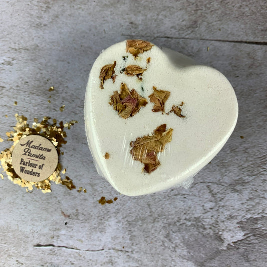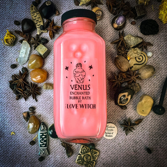 When you see other factory-made bath crystals and bath salts out there that include cheap fragrance, garish colors and no magical herbs, so you'll find our Bath Crystals to be a revelation! For example, our Bath Crystals contain pure sea salt and Epsom salts, essential oils, and herbs. Then we add a touch of phthalate-free perfumer-quality fragrance and a dash of light food-grade color to bring in some extra magic. The proprietary Bath Crystal formulas are created by Madame Pamita and hand-blended right here at the Parlour of Wonders. These crystals are effective tools that help to facilitate clearing and balancing, while encouraging and uplifting your spirit.