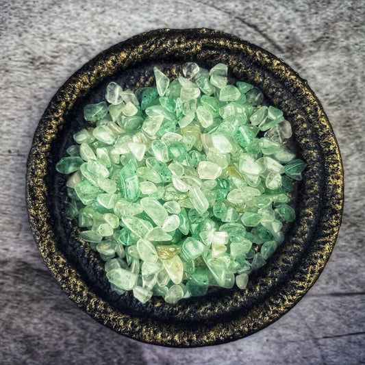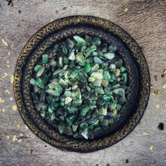 Have you worked with Gemstone Chips and Gem Glitters? Gem chips are smaller than full-sized tumbled stones but larger than gem glitter. They are perfect for sprinkling around your candle spells. Or add them to crystal grids and are just the right size for charm bags or loading your candles. Work with them however you like!