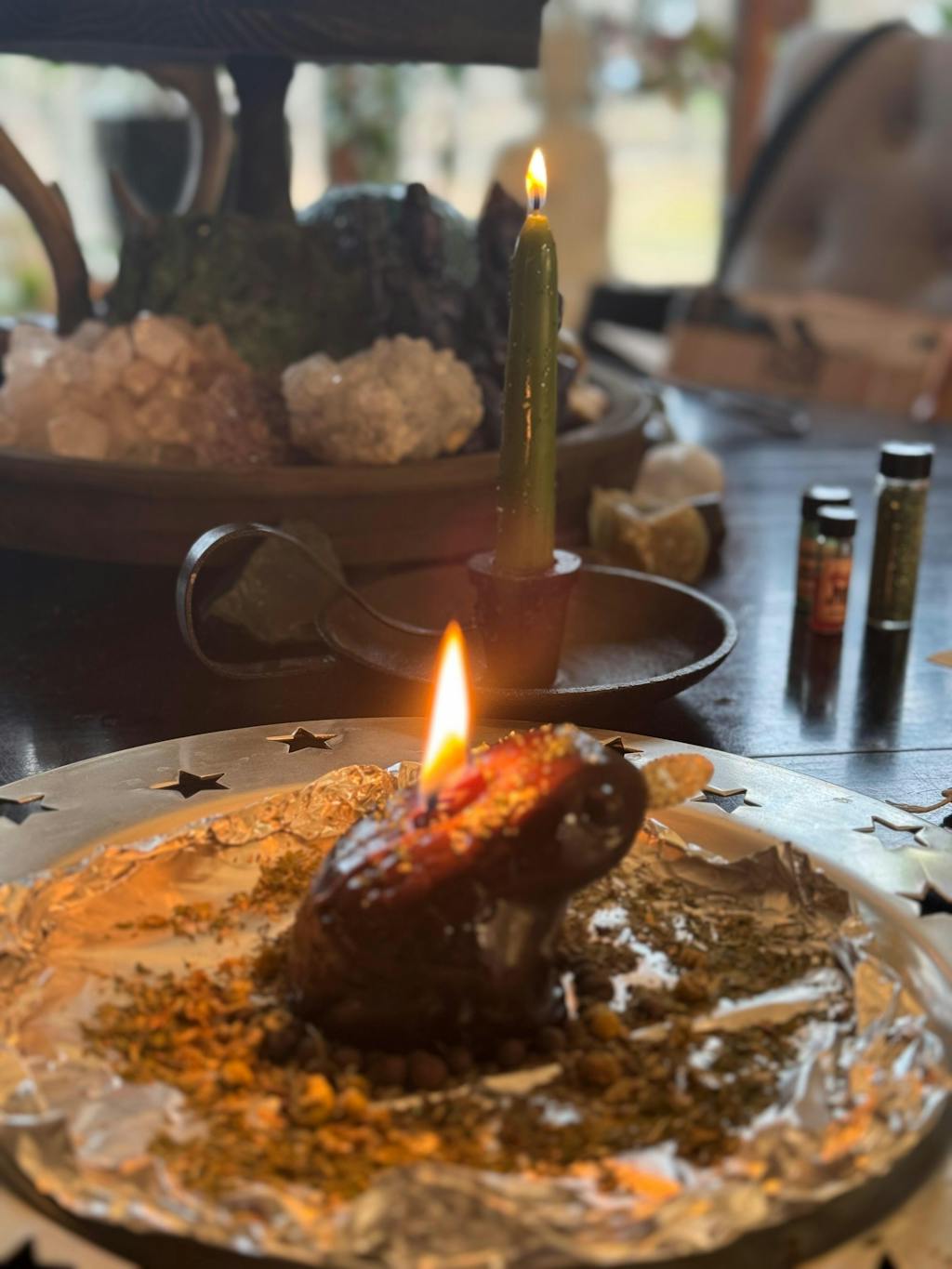 We’re in the process of purchasing our first home. I wanted a candle spell that would help shift the energy around the situation to attract more money for the closing costs and to make sure the mortgage goes through with grace and ease. Since my business stems from being an artist, I chose the blue from to align with money luck from creativity.