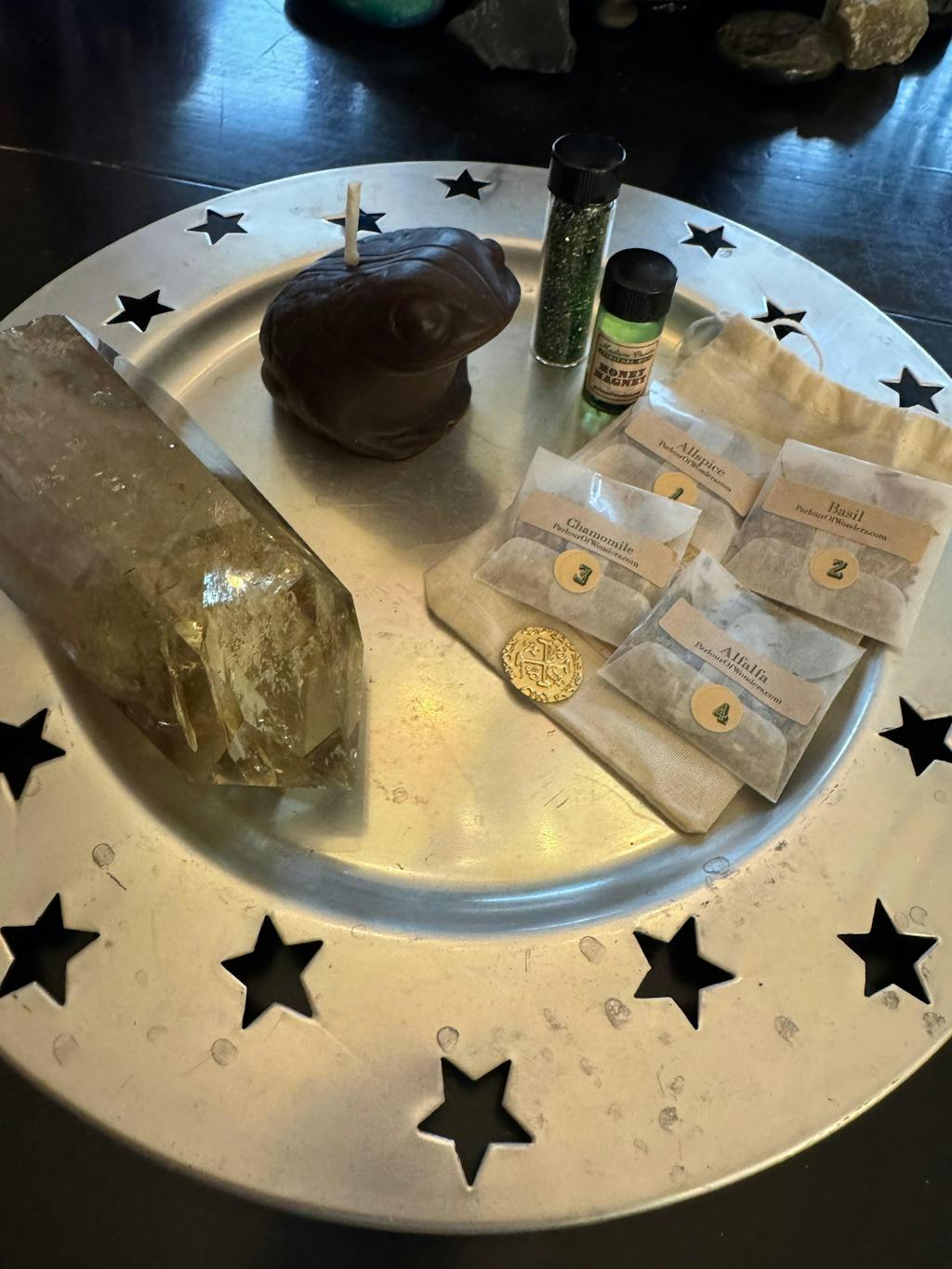 I purchased this because my family has been through a number of expensive changes and some turmoil and I want things to settle and come through for us. The instructions are clear, the frog candle is very high quality, and the coin felt magical before I even began my working. Things are starting to change for me for sure. I am so grateful to the parlour of wonders for making the best beeswax figuran candles in the world and pairing them with incredible well-thought-out complete spell workings for us baby witches who need a bit of help.