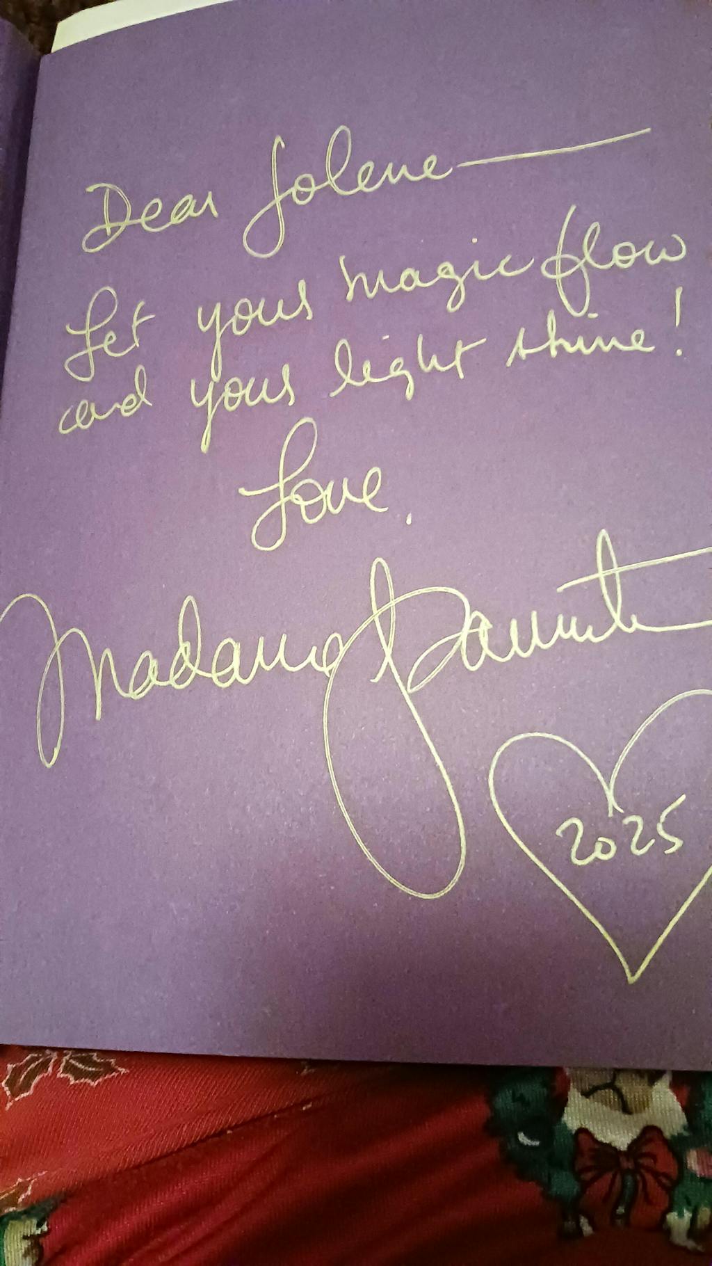 Got a message written by Madame Pamita in the book. Love the message she wrote to me. Love madame Pamita.